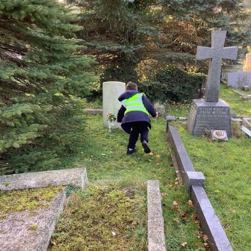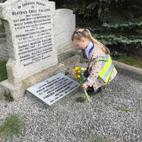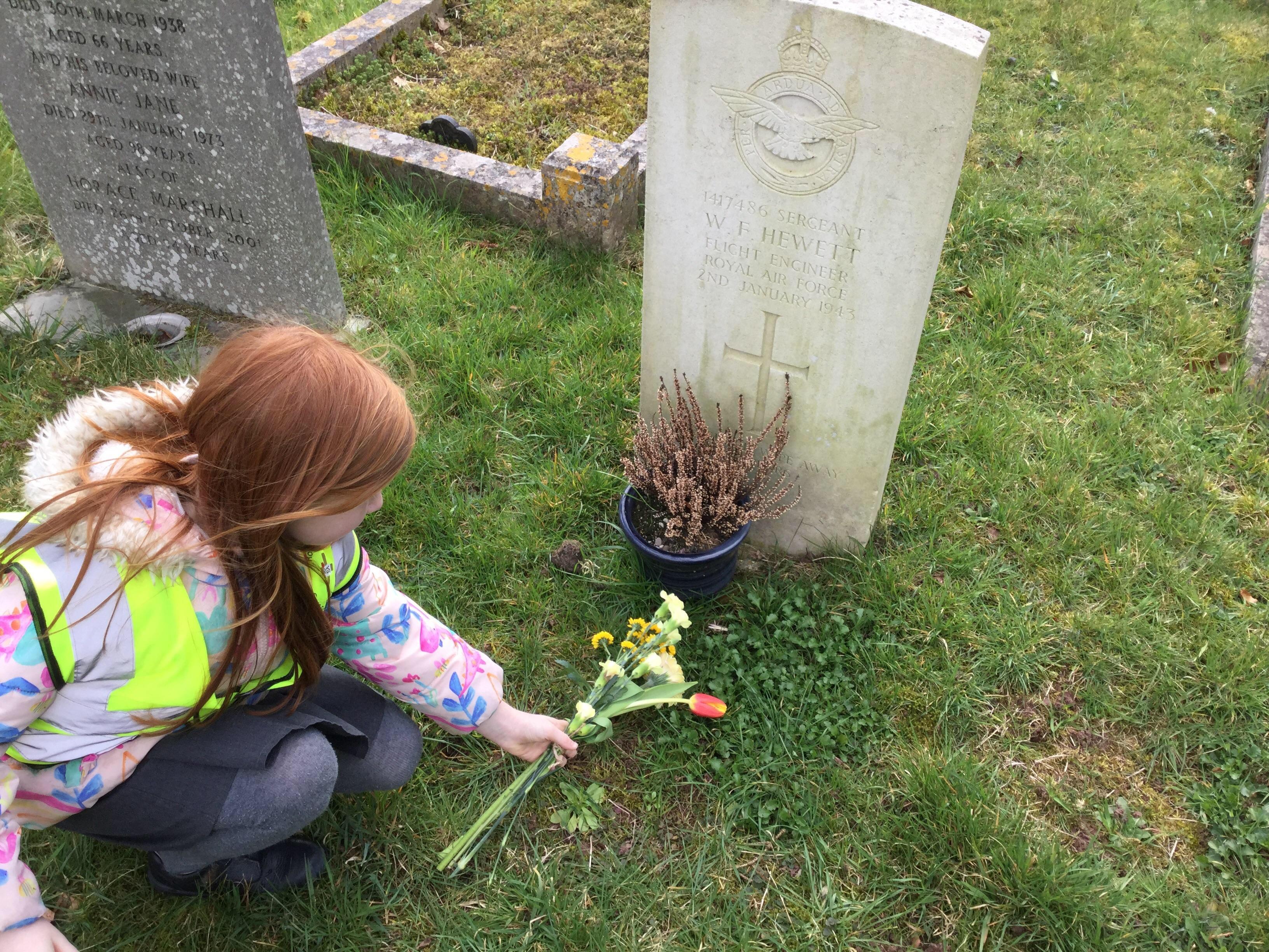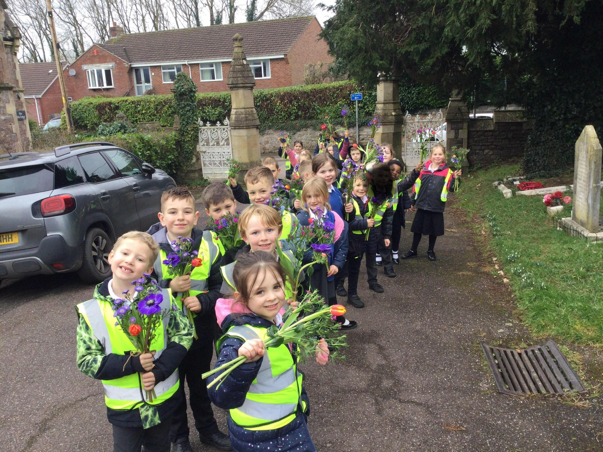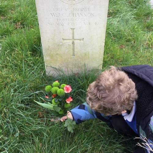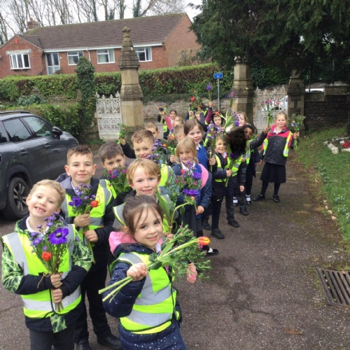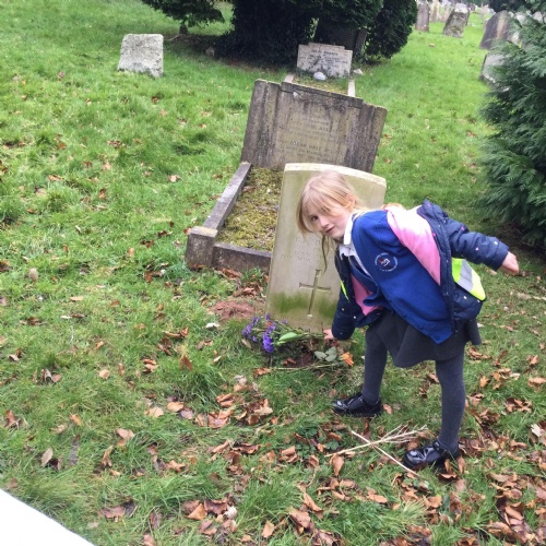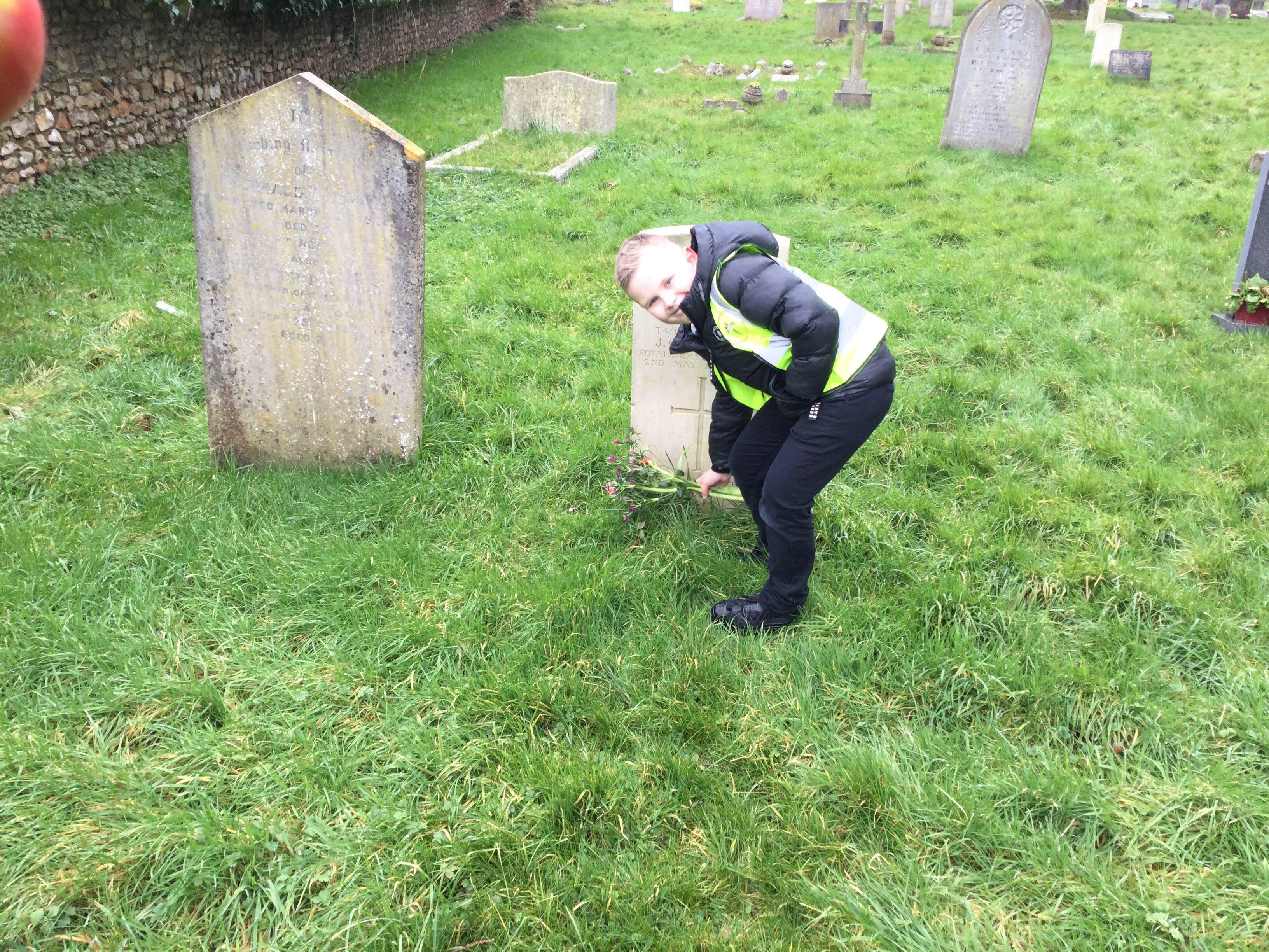 Every month a class takes flowers to the war graves at our local cemetery. Year 3, Year 2 and Year 1 went in spring term and laid the flowers to show respect to the fallen soldiers.