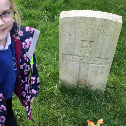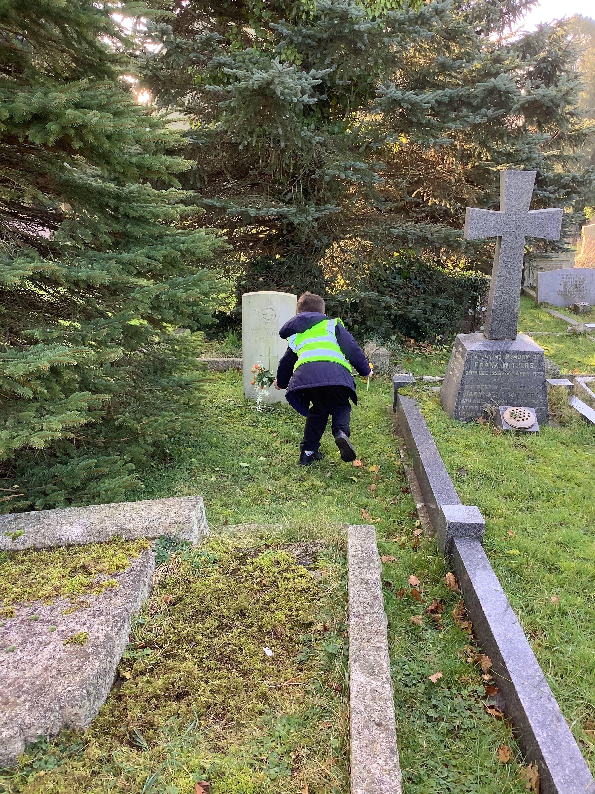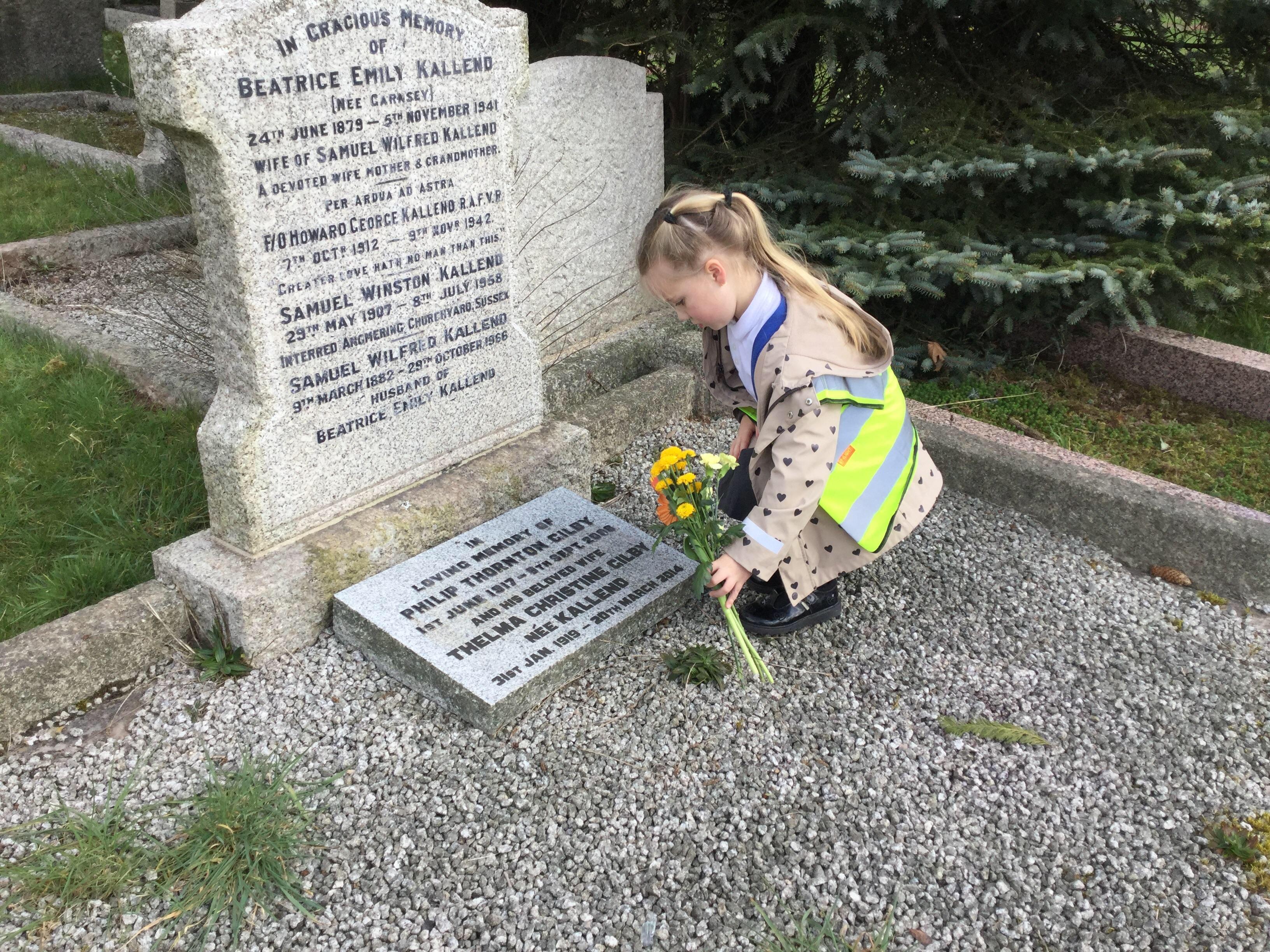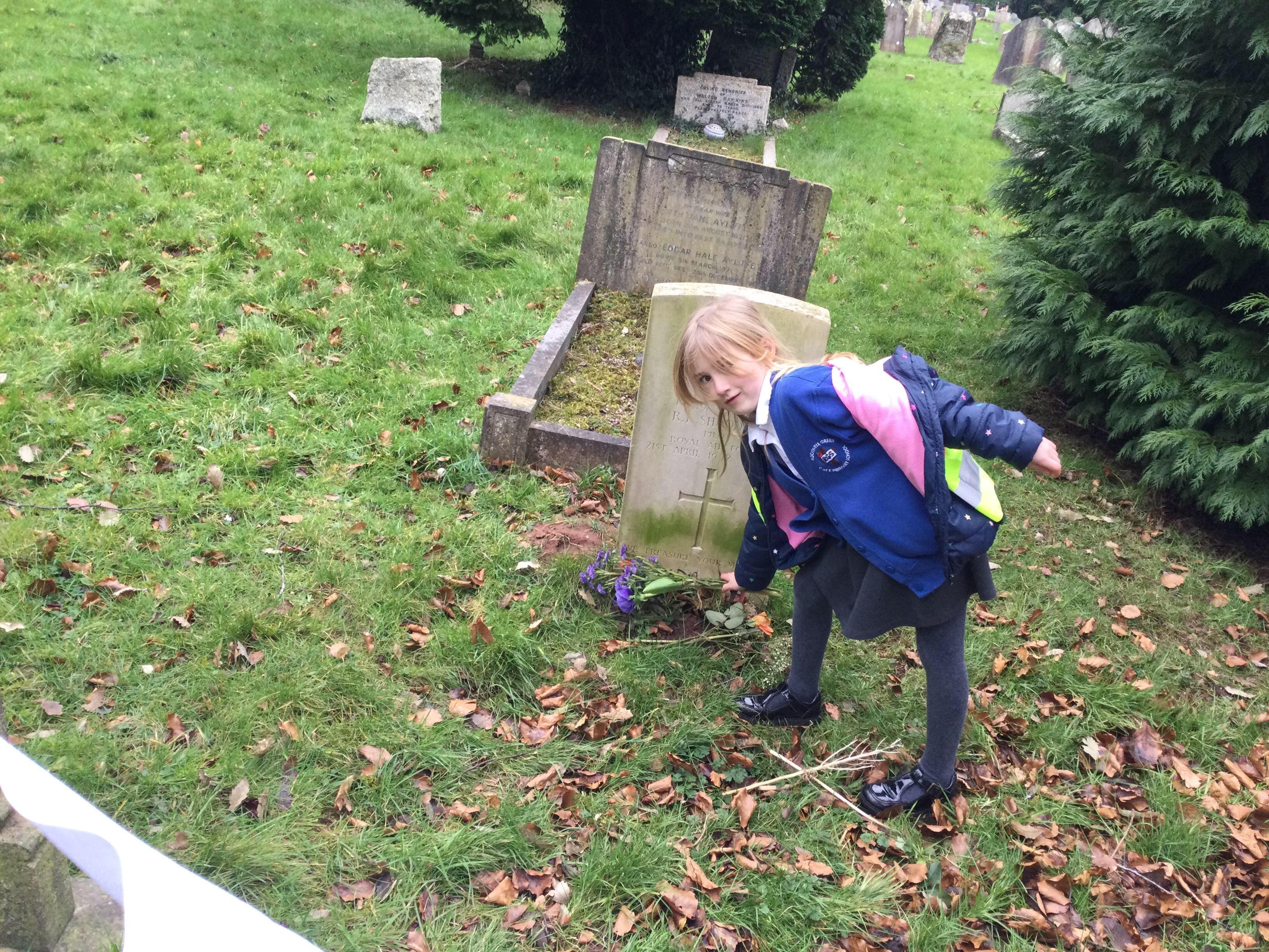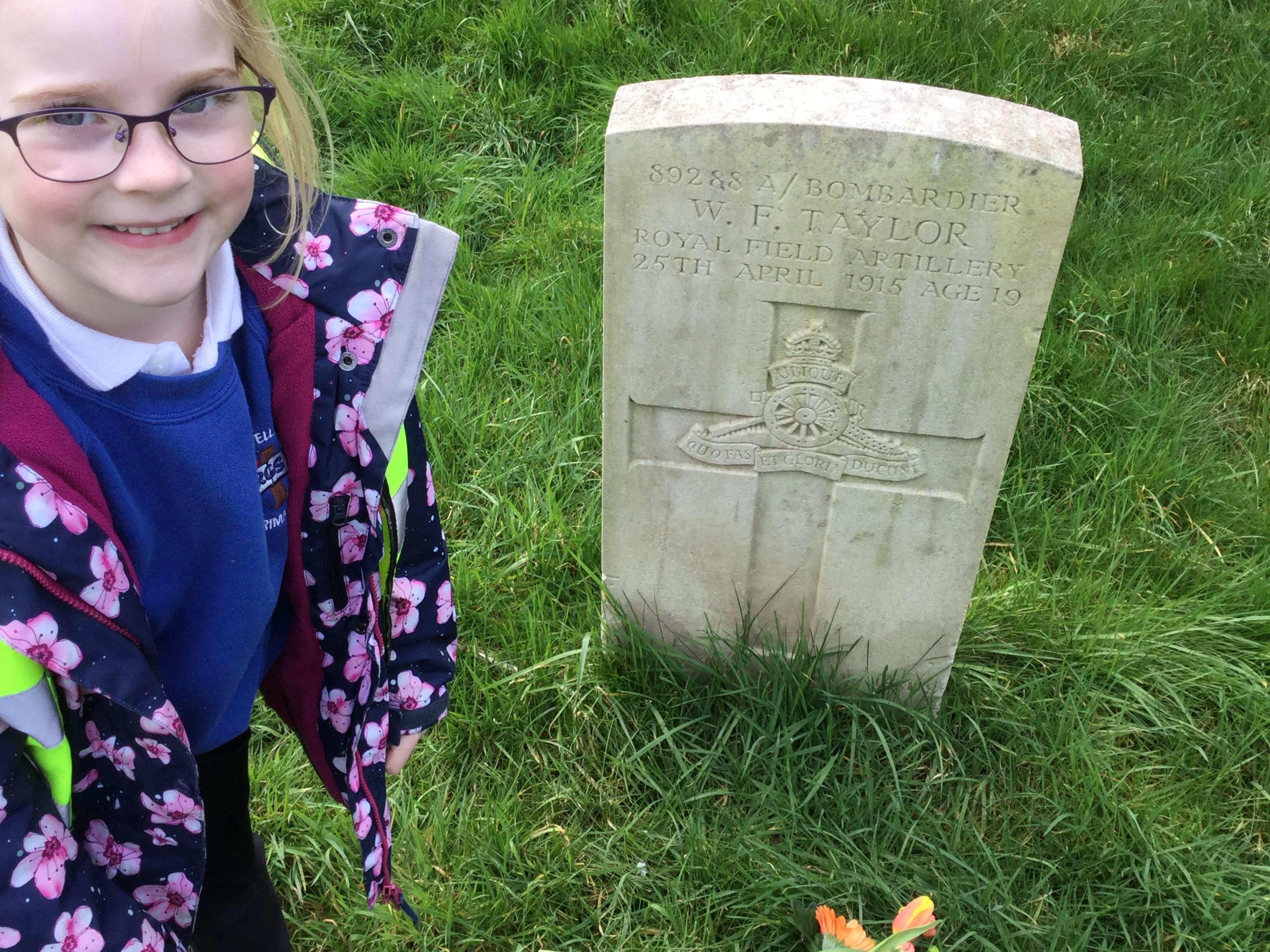 Every month a class takes flowers to the war graves at our local cemetery. Year 3, Year 2 and Year 1 went in spring term and laid the flowers to show respect to the fallen soldiers.