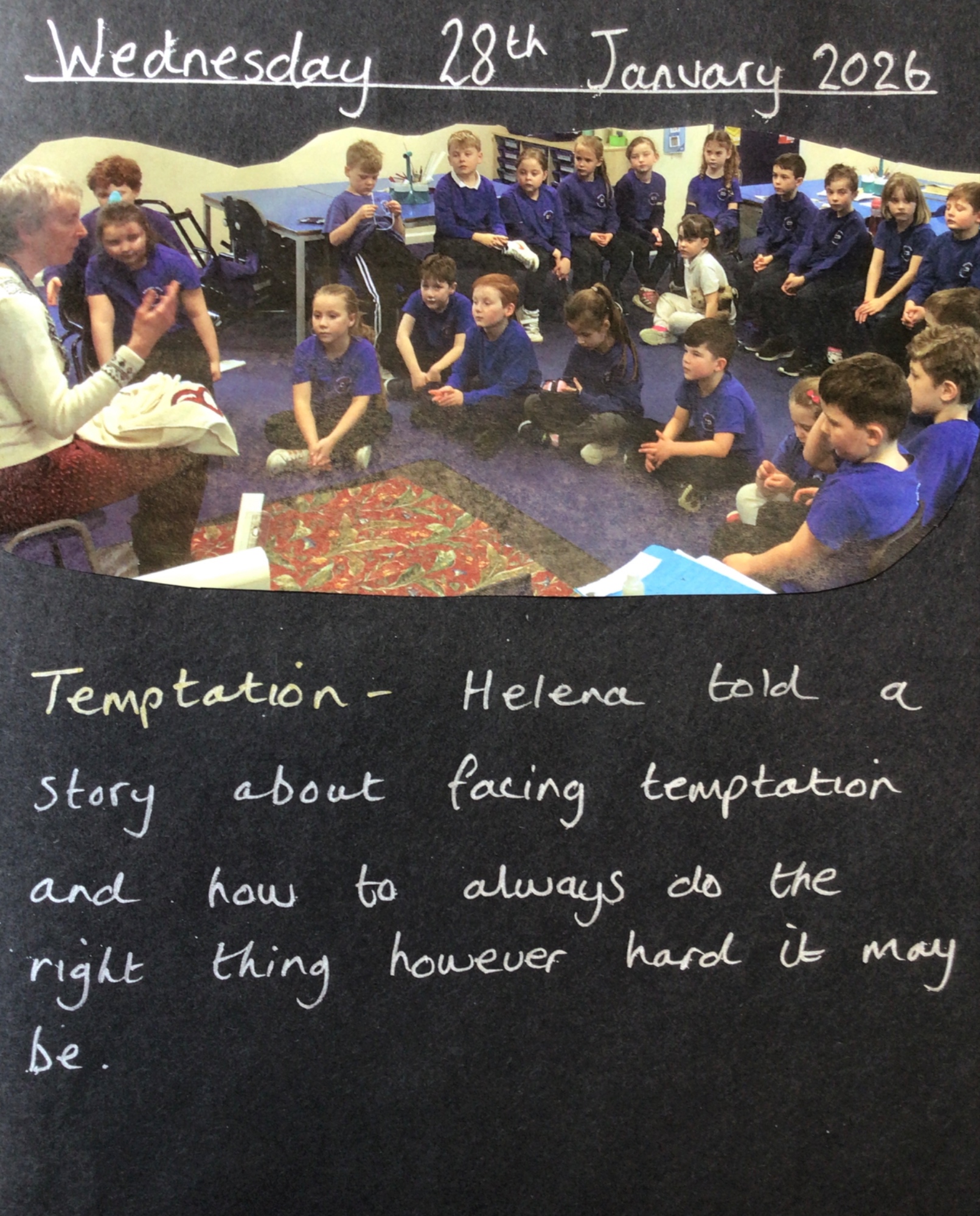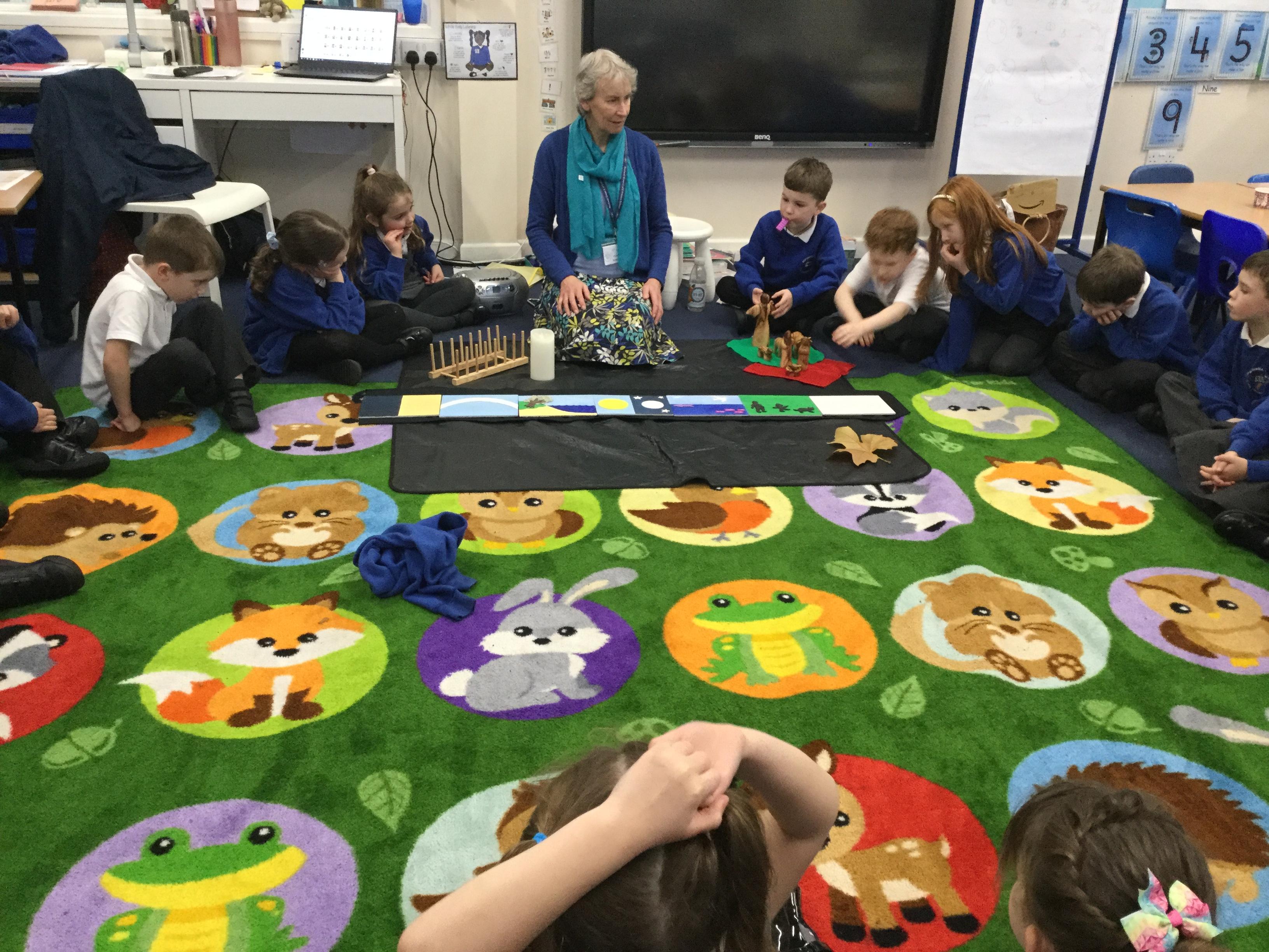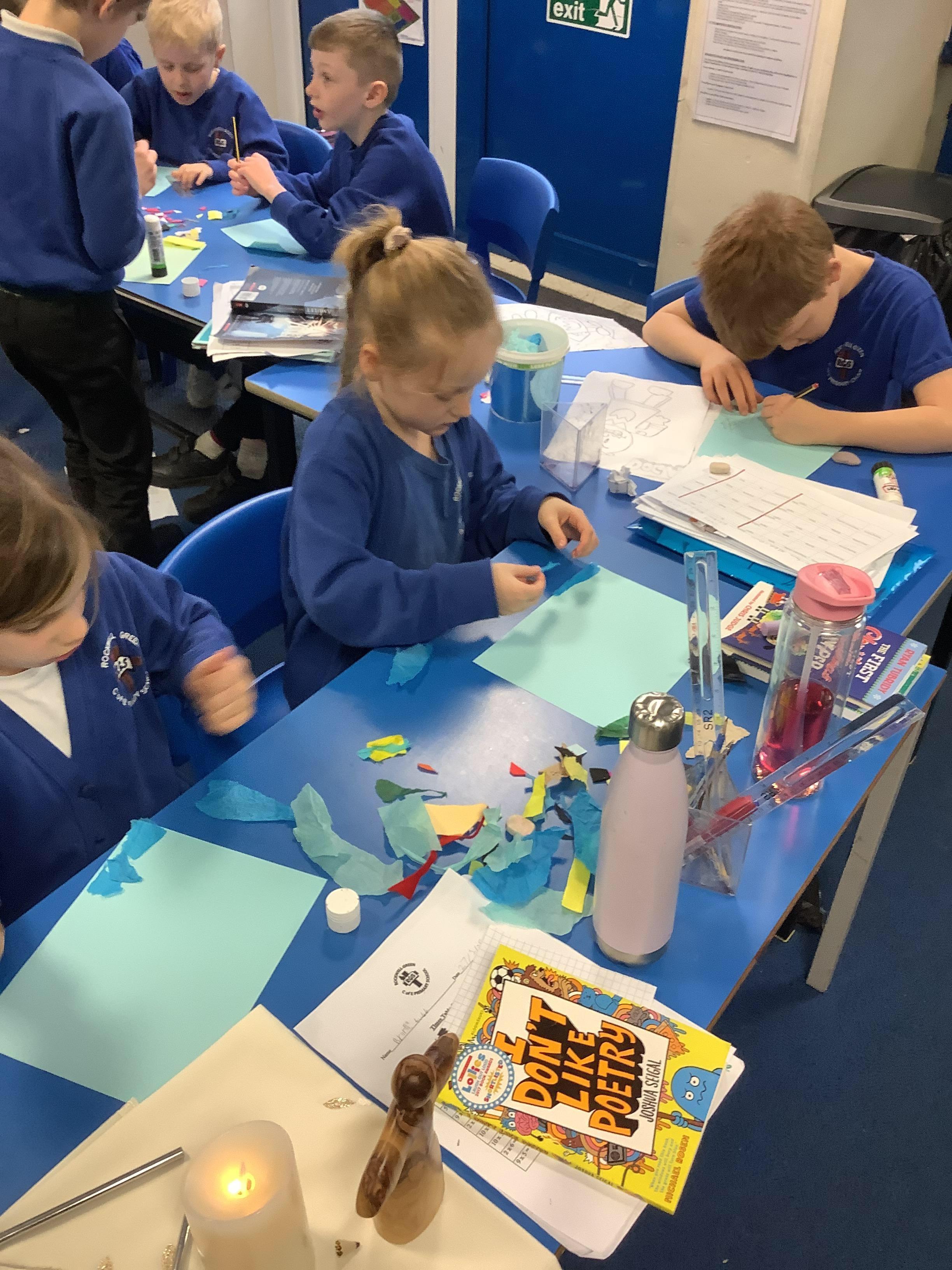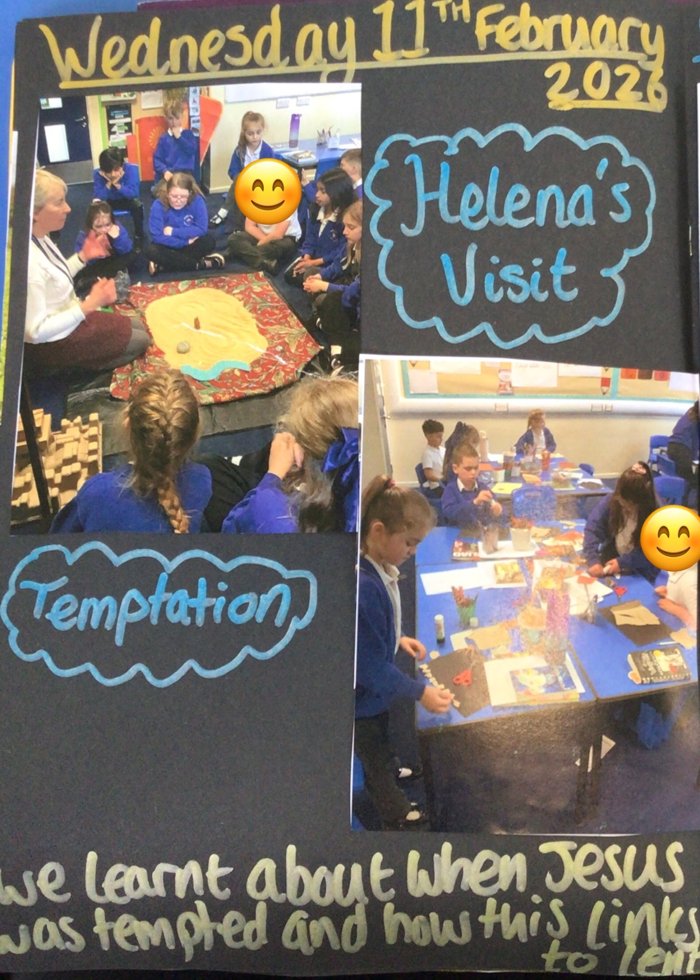 In the autumn term Helena our School Chaplin visited each class to teach them about the creation story and the parable of good Shepherd. Using Godly Play Helena told these stories and then the children recorded their thoughts from this by making collages.