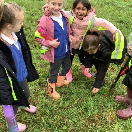 Year 3 worked with Rosie from The Woodlands Trust. They planted bulbs amongst the trees which were planted by The Woodland Trust last year along The Green Corridor which is located behind our school. The bulbs were provided by the Transitions Town Scheme.