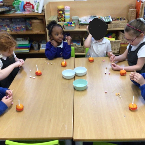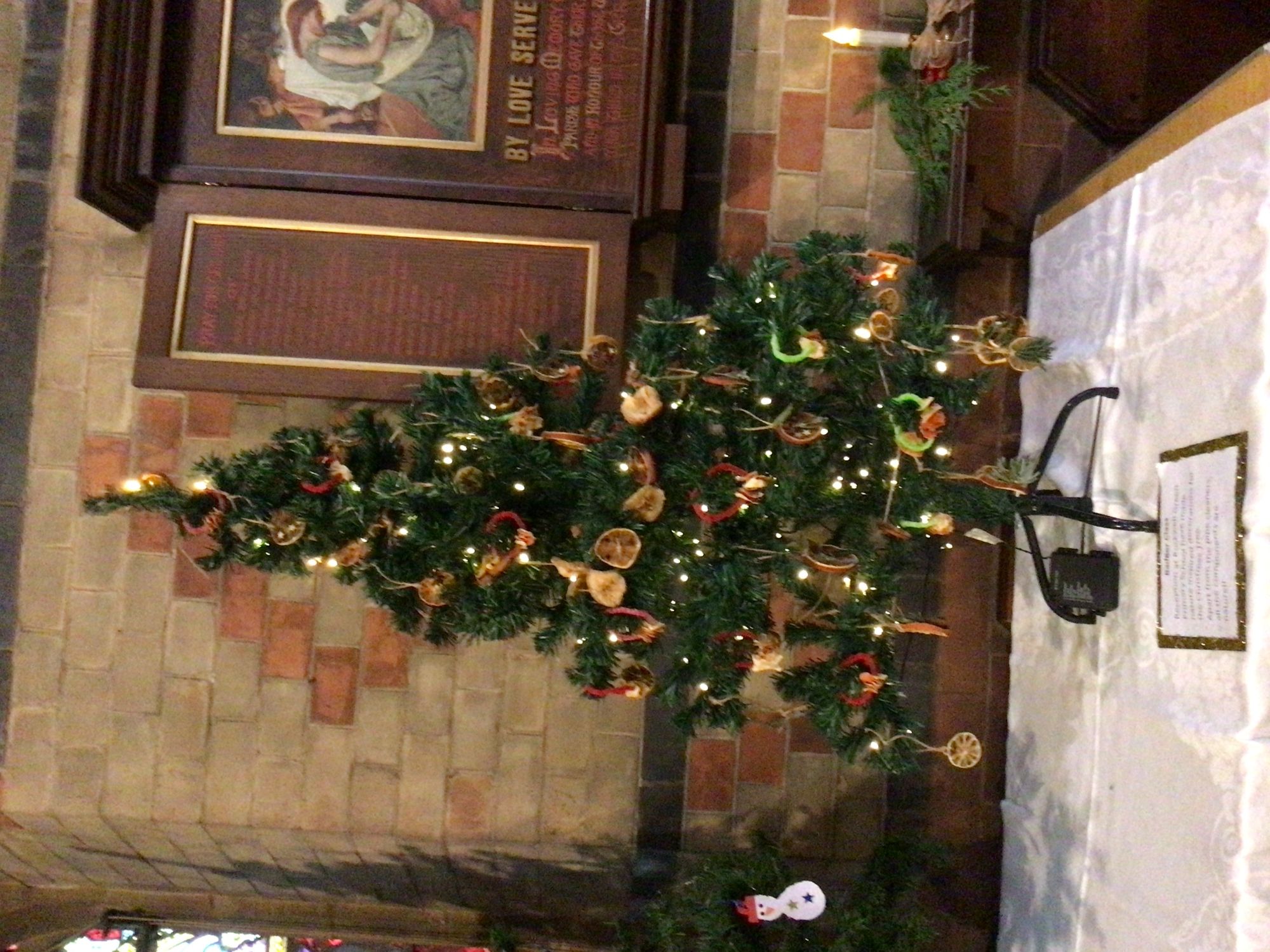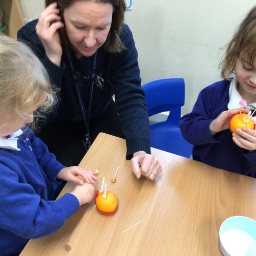 Reception Class made Christmas tree decorations to decorate a tree for The All Saints Christmas Tree Festival. They made decorations using natural ingredients. They dehydrated citrus fruits and then decorated them using cloves, star anise, evergreen leaves and wooden stars. They also made orange peel wreaths using the dried peel of oranges threaded onto pipe cleaners. On Monday 15th December, the children in Reception Class attended a Cribs Service at the church and were able to explore the church, hear the Christmas story and look at the other trees on display at the church.
