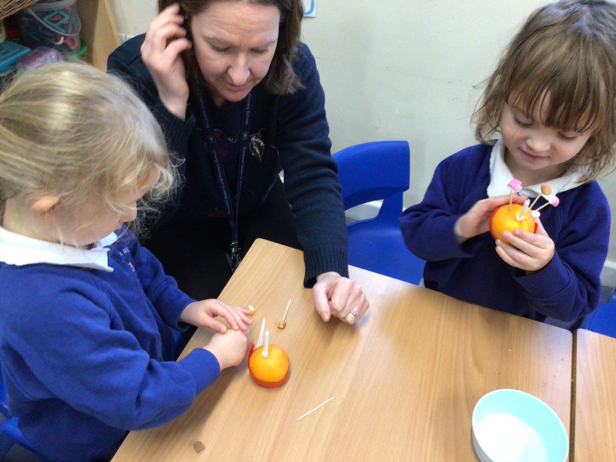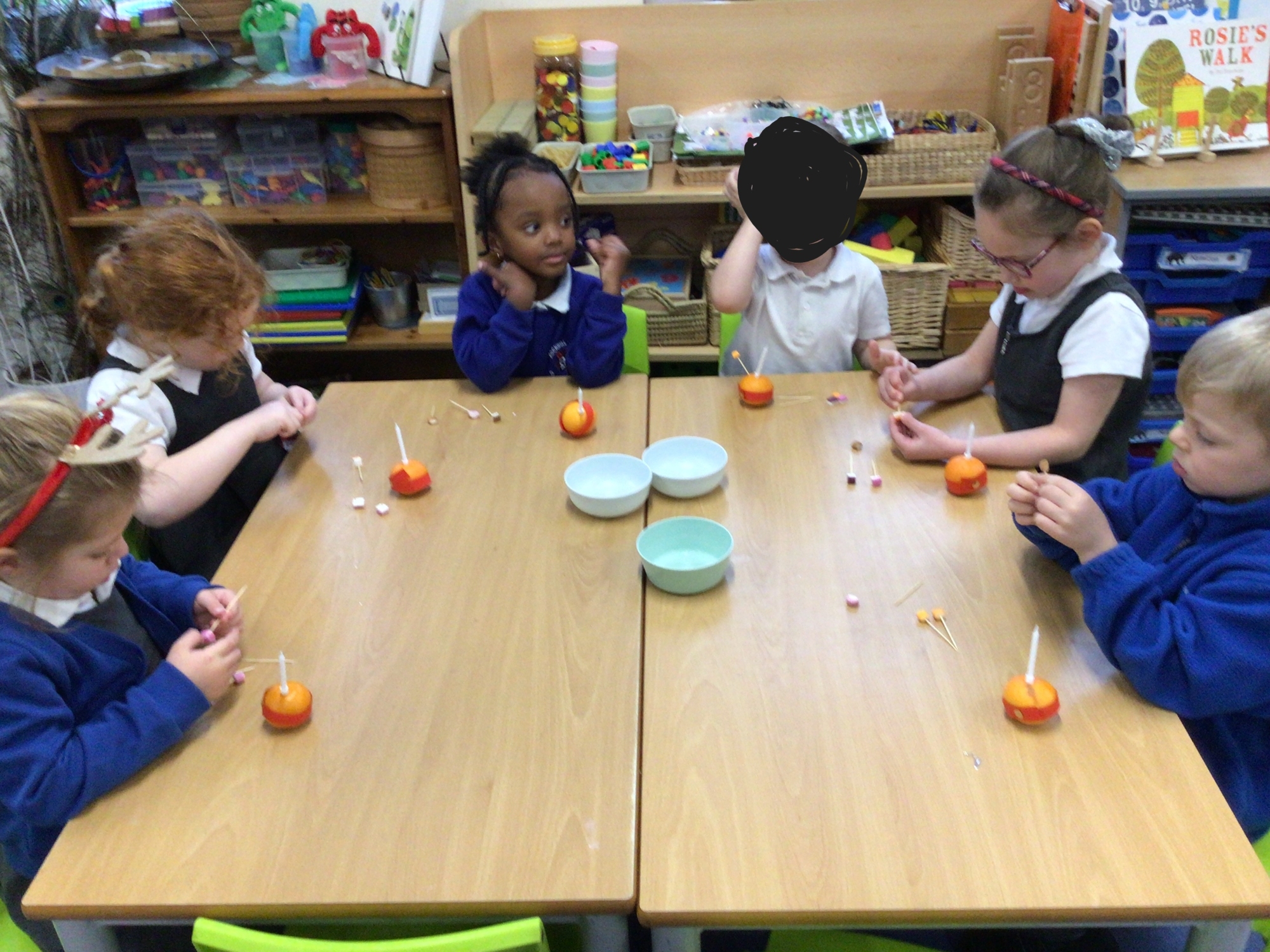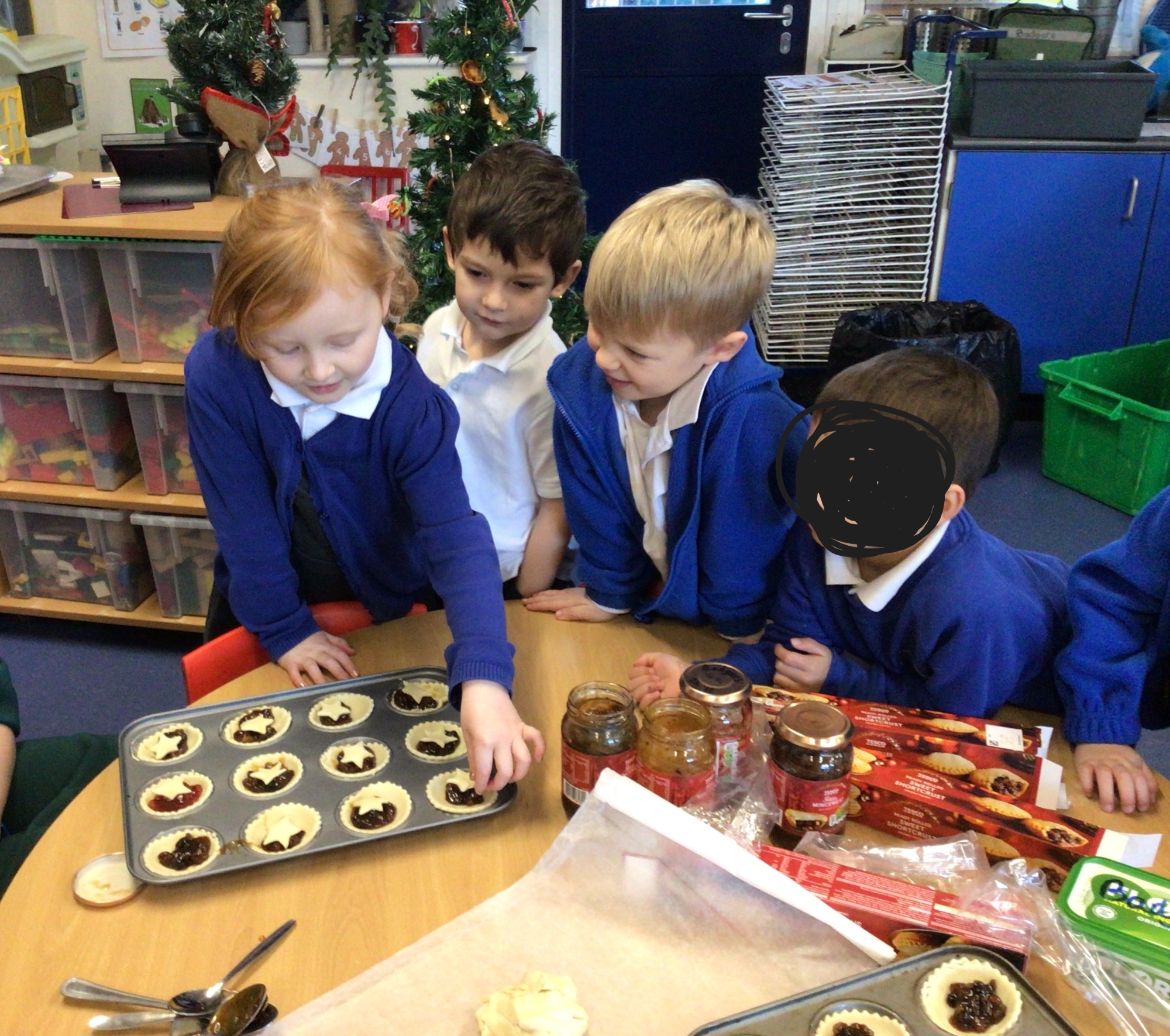 Reception class made and learnt the meaning of Christingles. Also, as part of their RE, they learnt the Christian meaning of a mince pie and why this has become a traditional Christmas food. The pastry casing and mince meat filling represent the manger and in the old days, Christians originally put a pastry Jesus on top. Now we put a pastry lid or a star.
