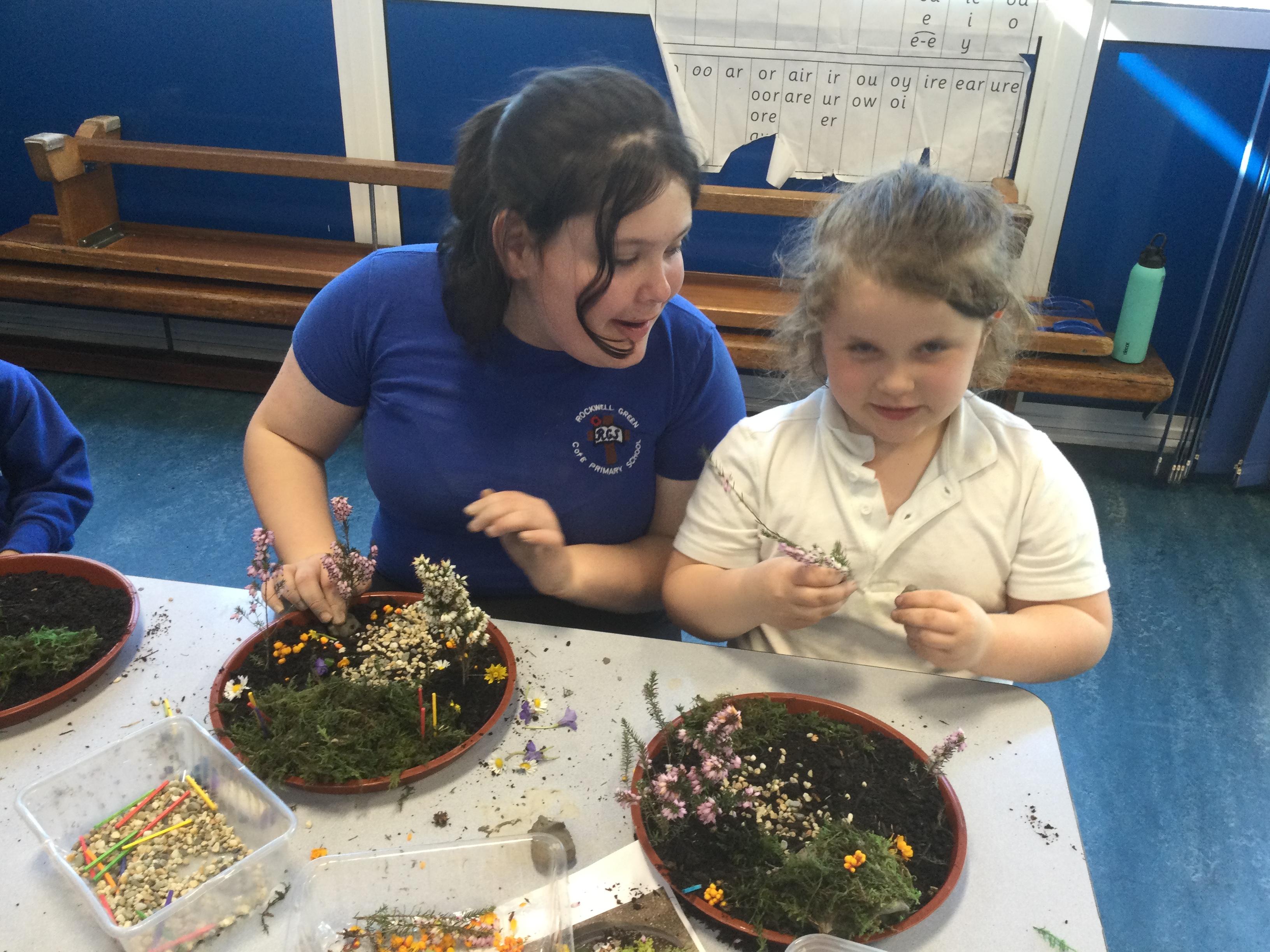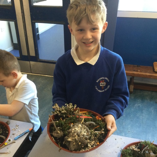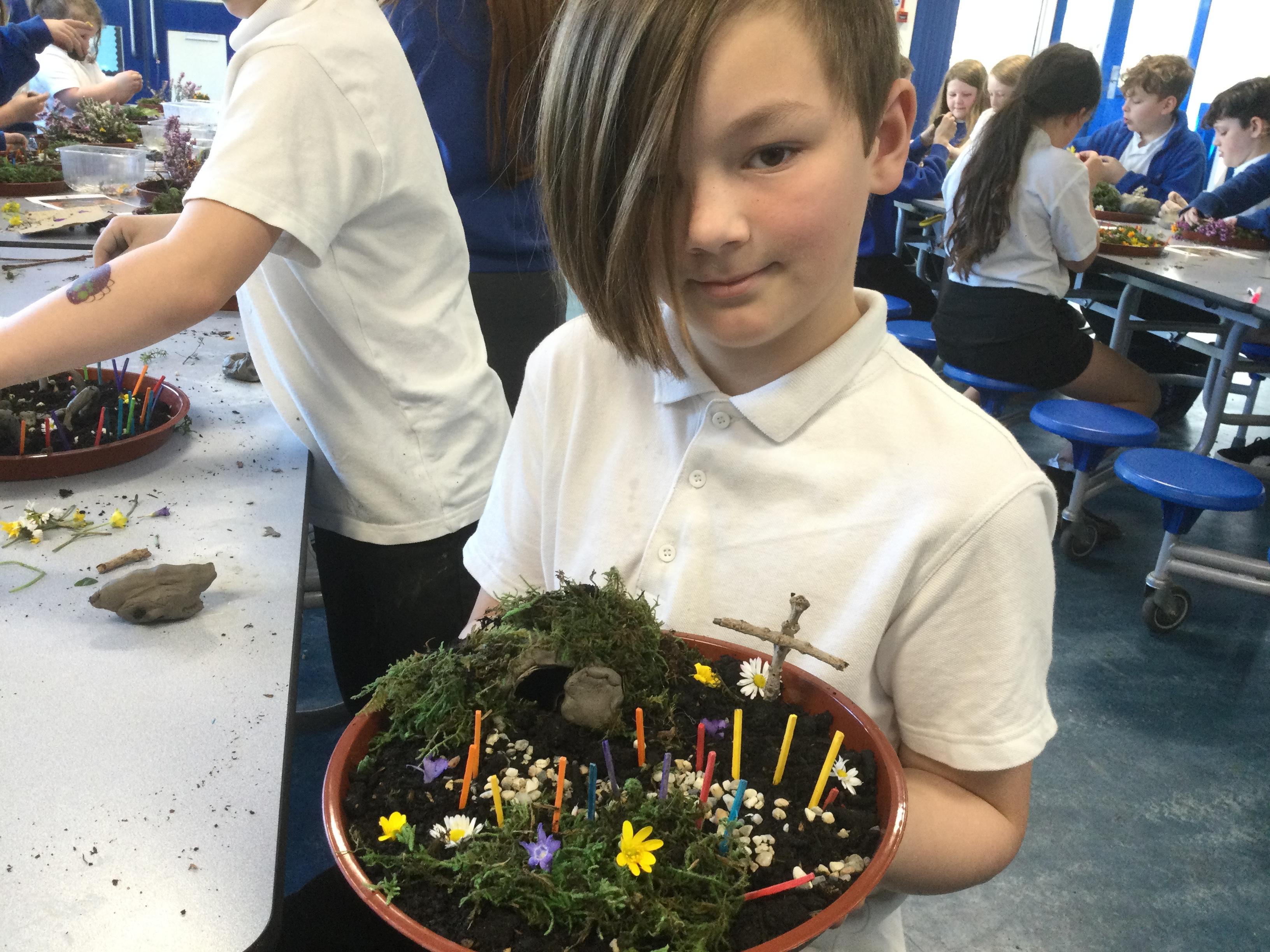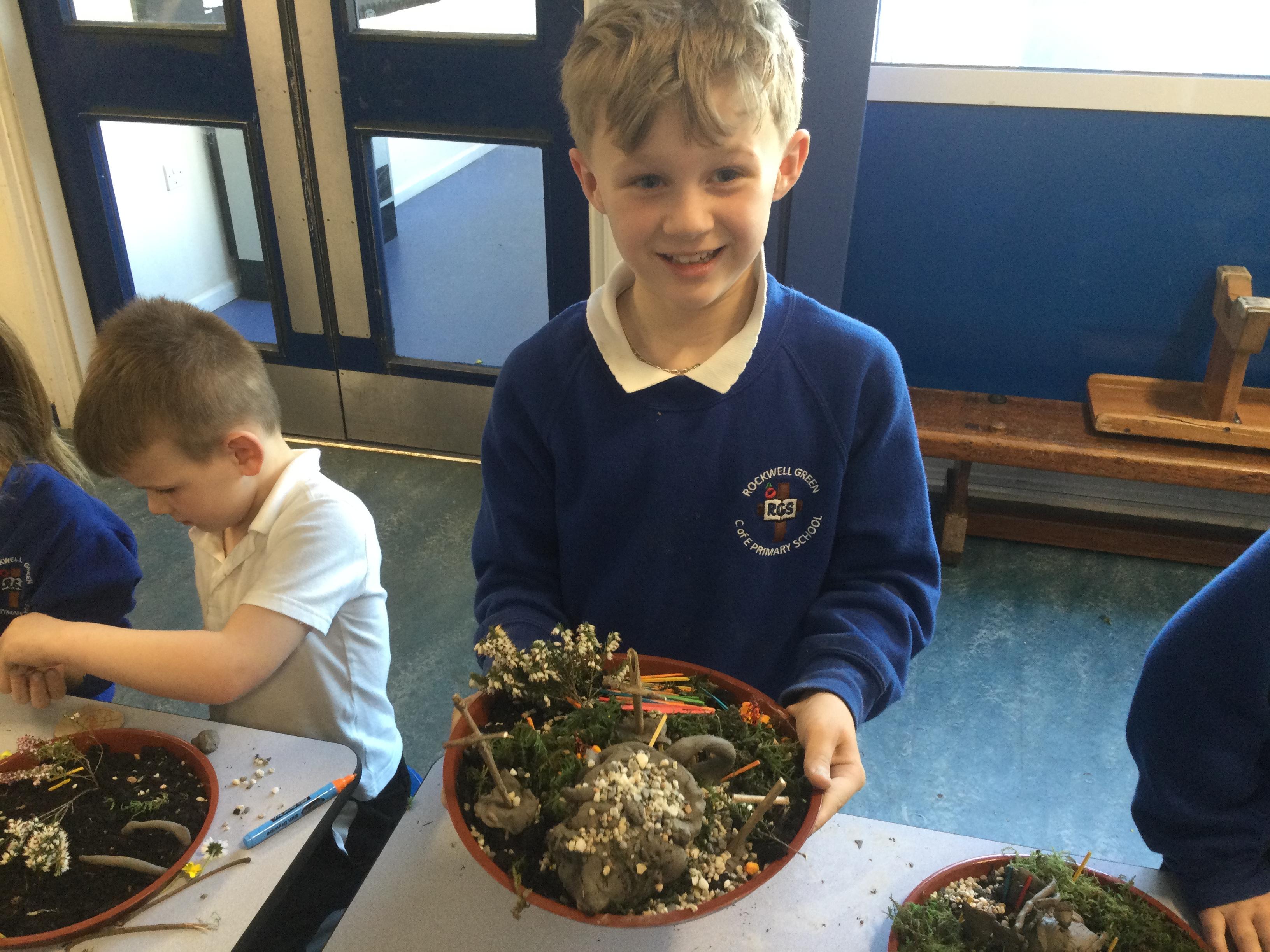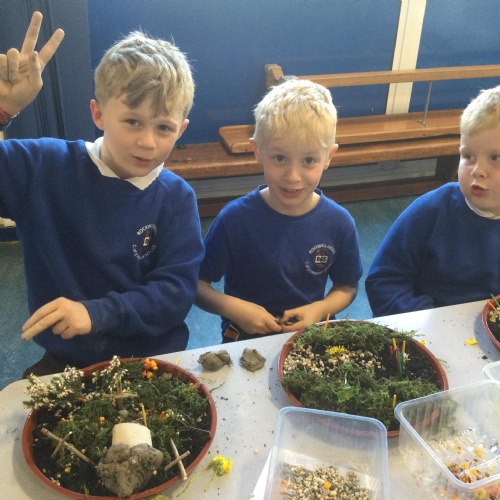 This term Mendip House had the most points and the children got to make Easter Gardens. They used soil, clay, moss and flowers to do this. They looked amazing and the children looked very engaged and on task whilst they were making them.
