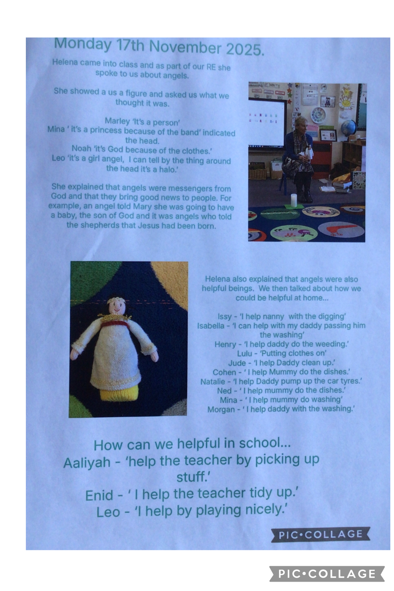 Throughout the autumn term, Helena our School Chaplain, visited each year group twice to work with them. They had a sessions on spirituality and incarnation.
