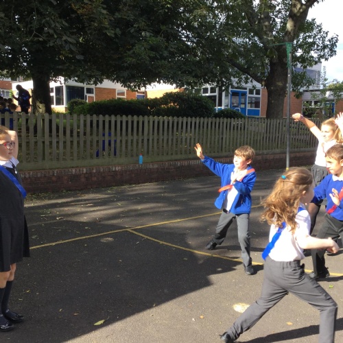 Playleaders are trained and coached by Miss Whelan, who then support games and activities on the KS1 and KS2 playgrounds at break and lunchtimes.